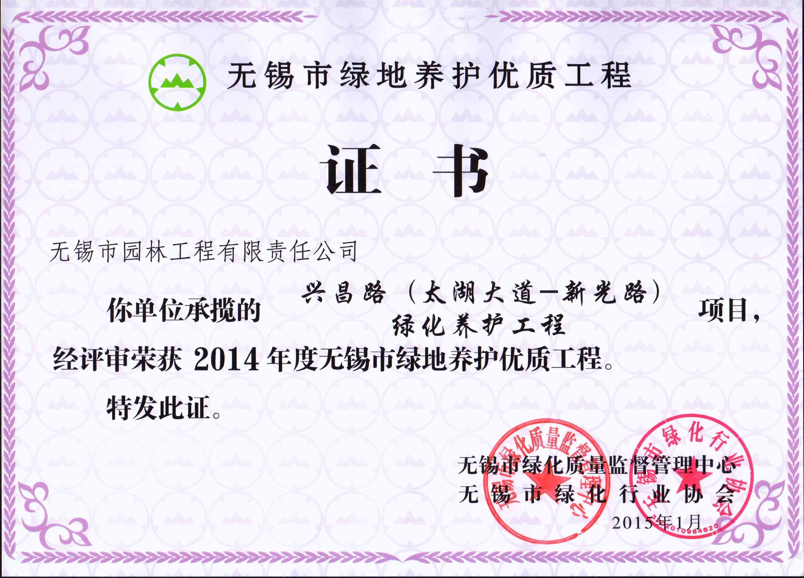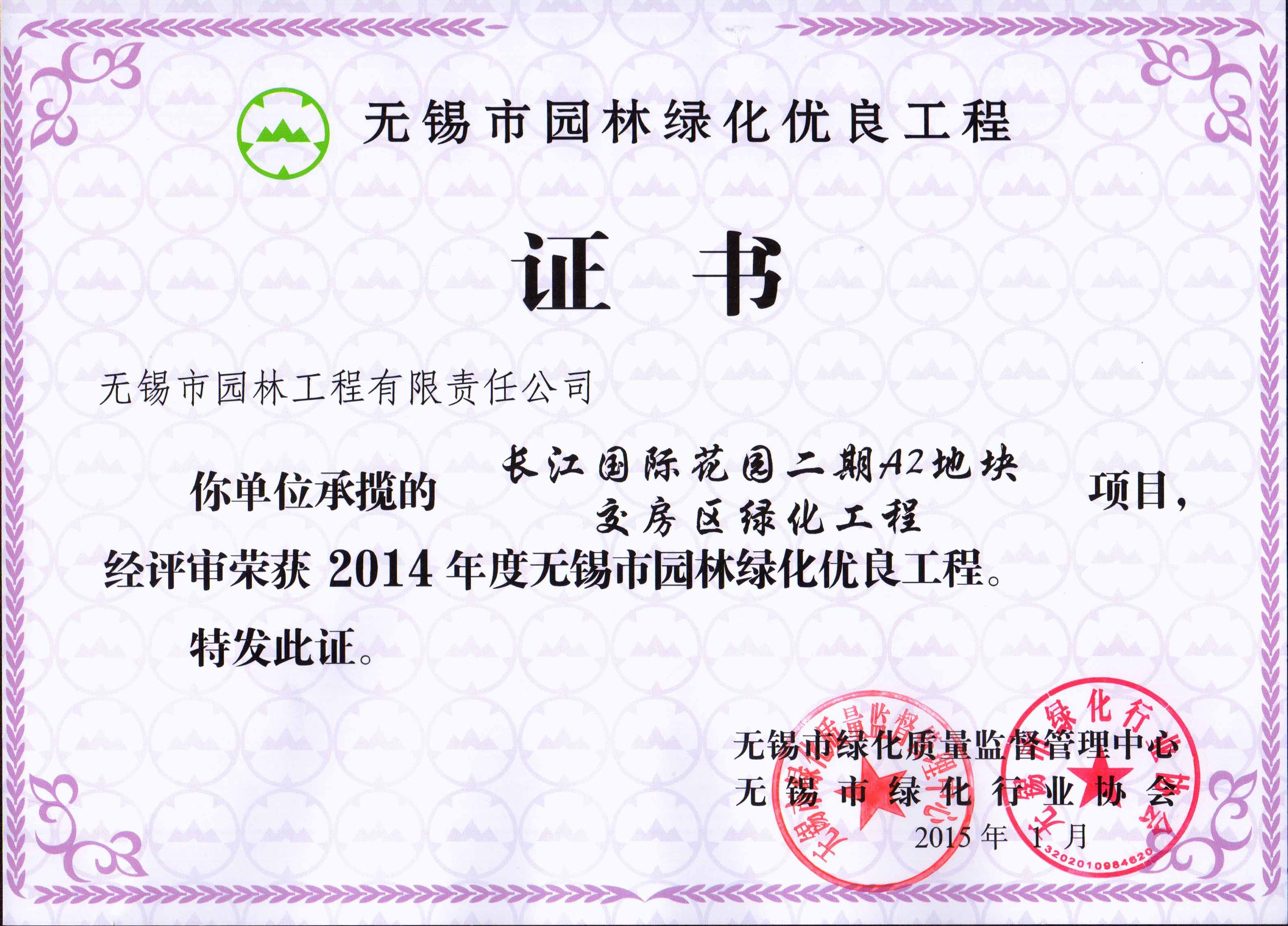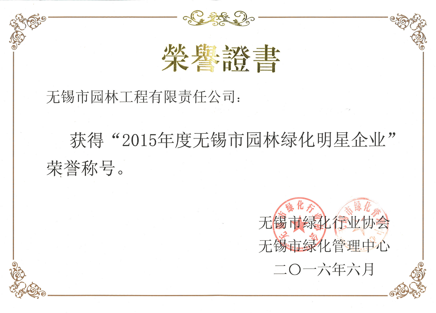 2015年度無(wú)錫市園林綠化明星企業(yè)