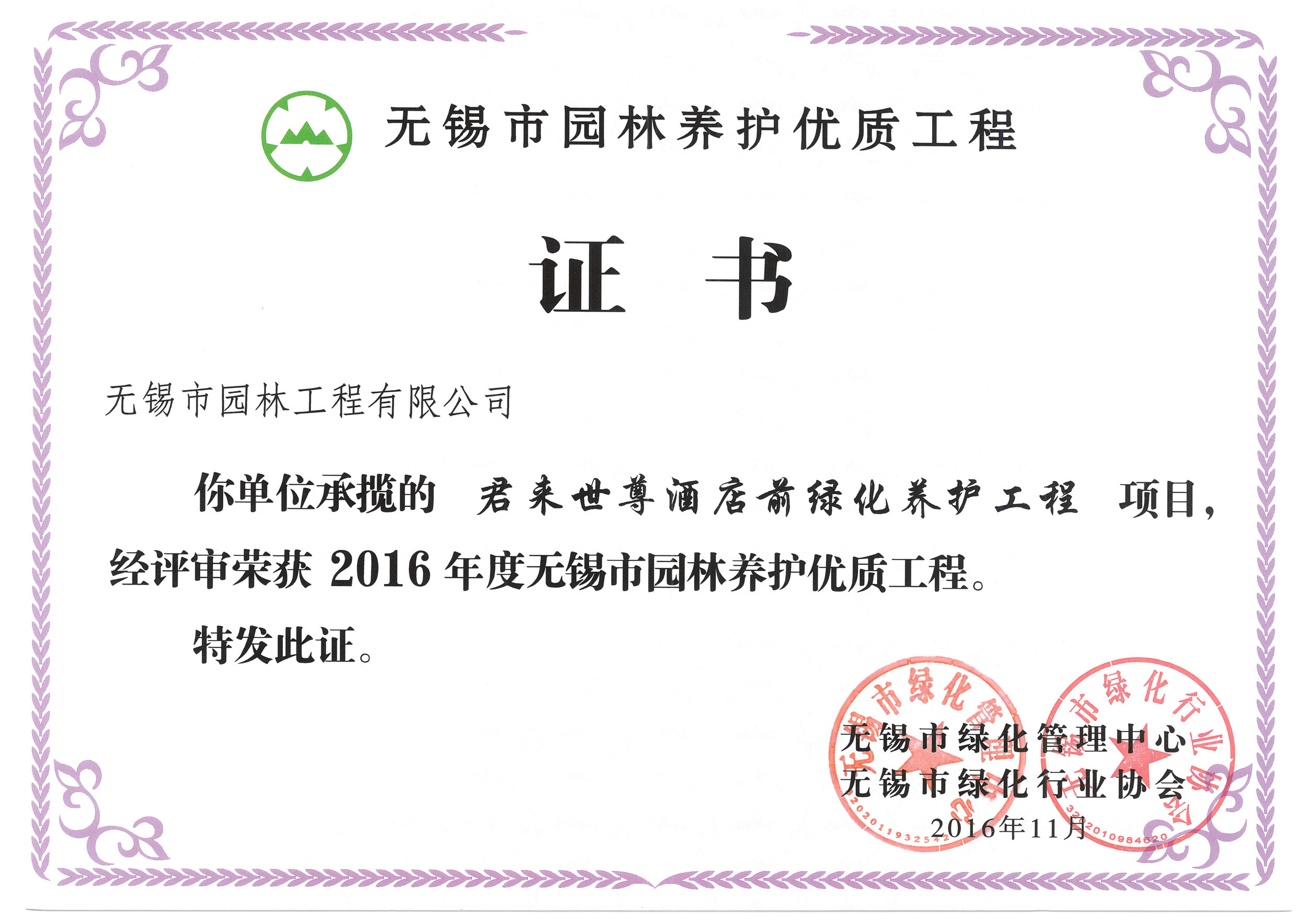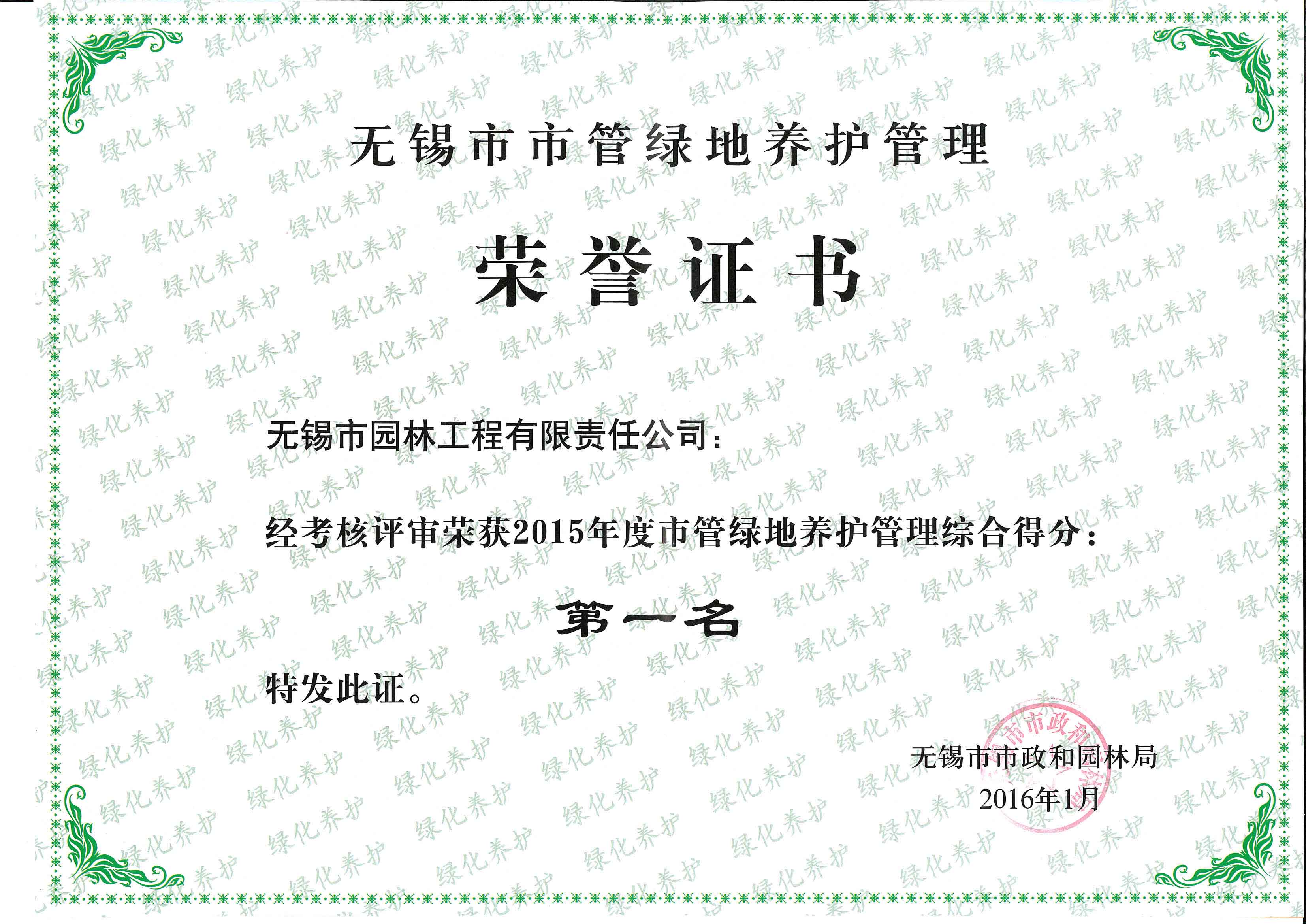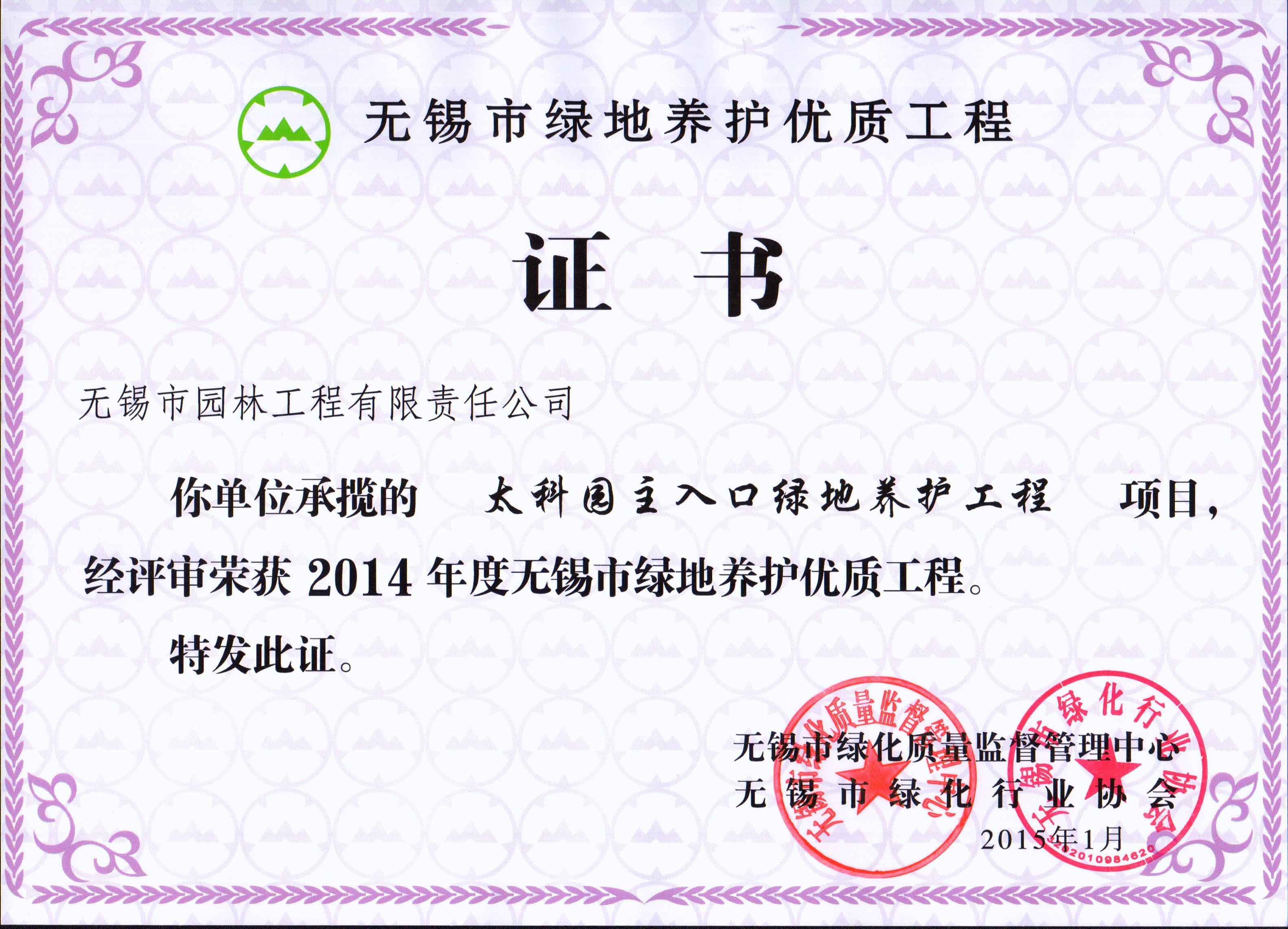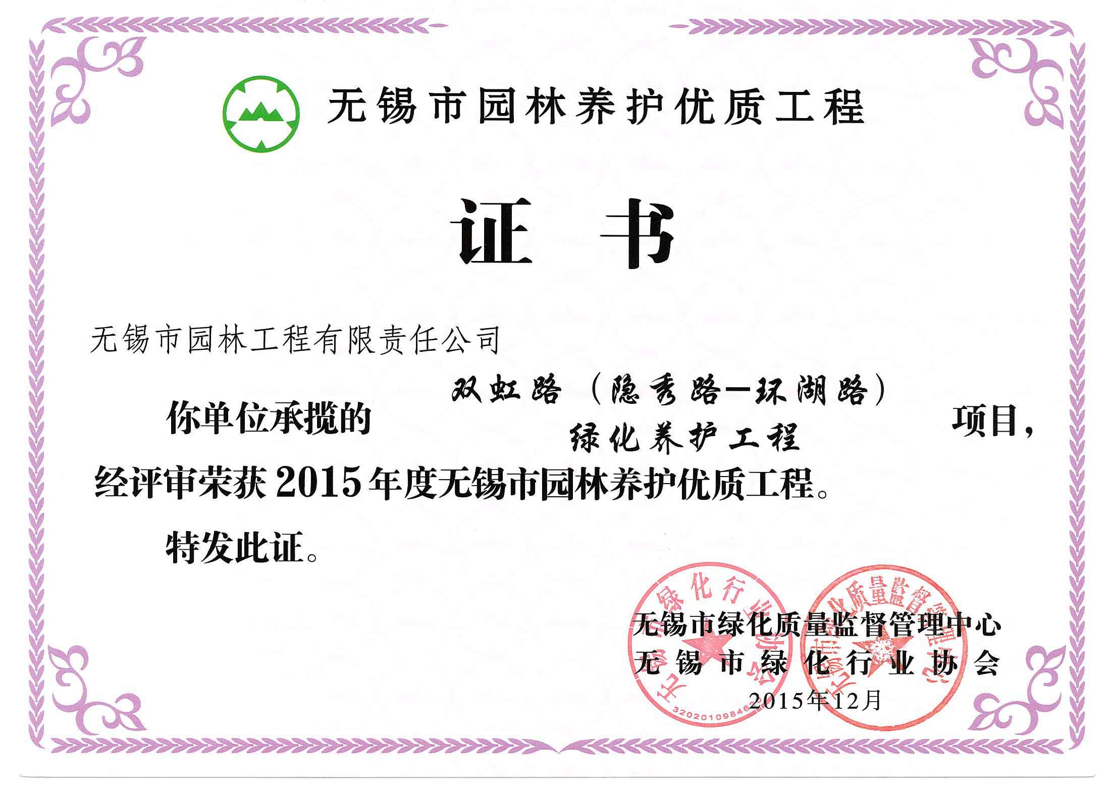 2015年度無(wú)錫市園林綠化明星企業(yè)