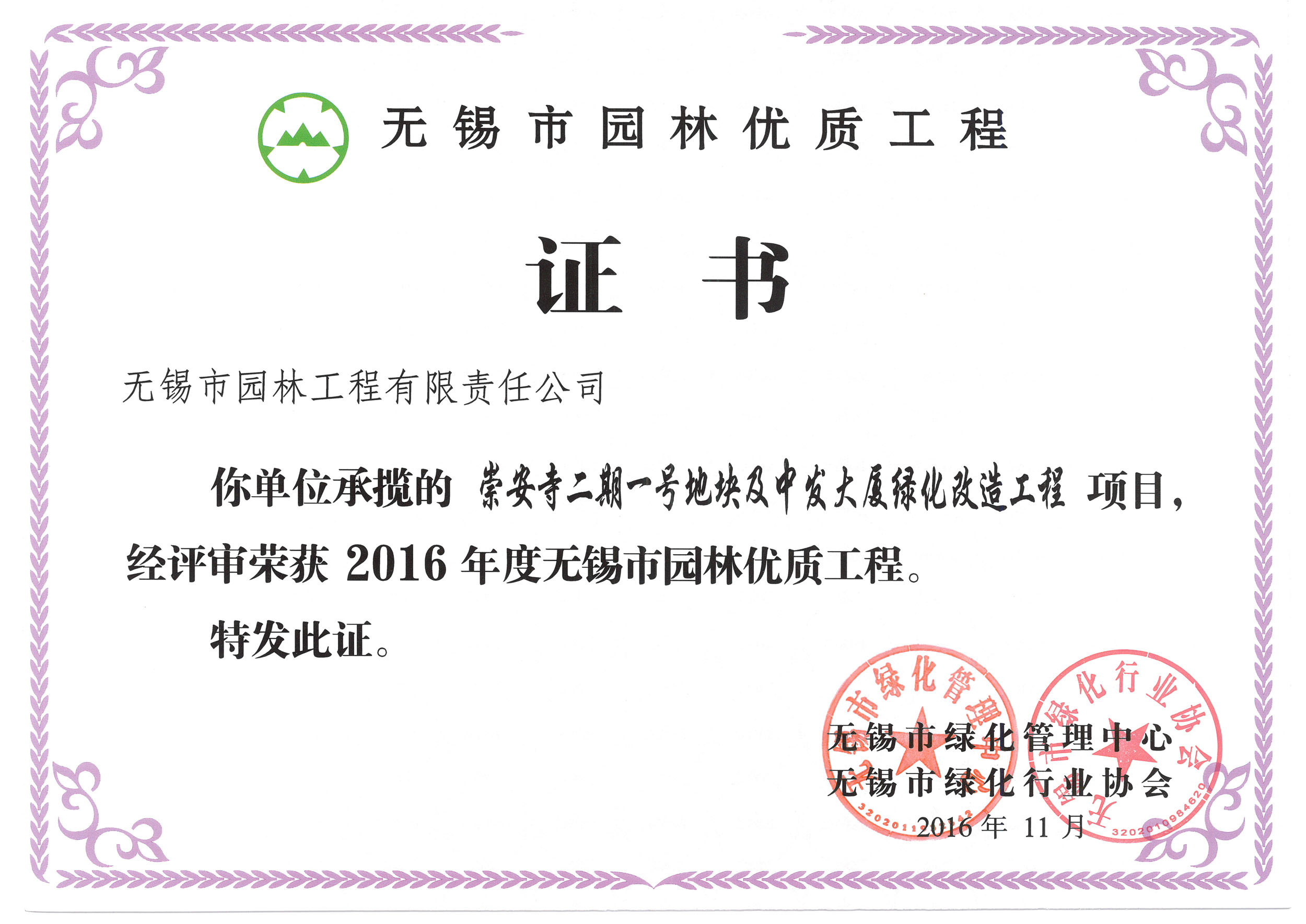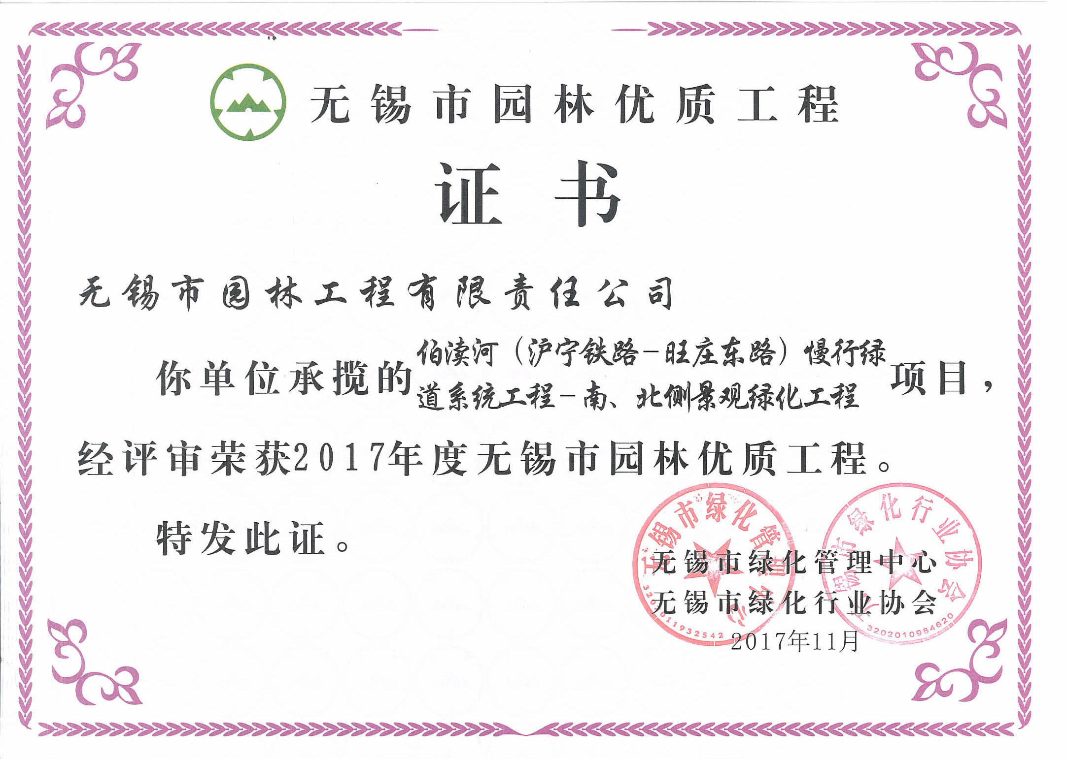2016揚(yáng)子杯——無(wú)錫地鐵1號(hào)線沿線景觀綠化工程三標(biāo)