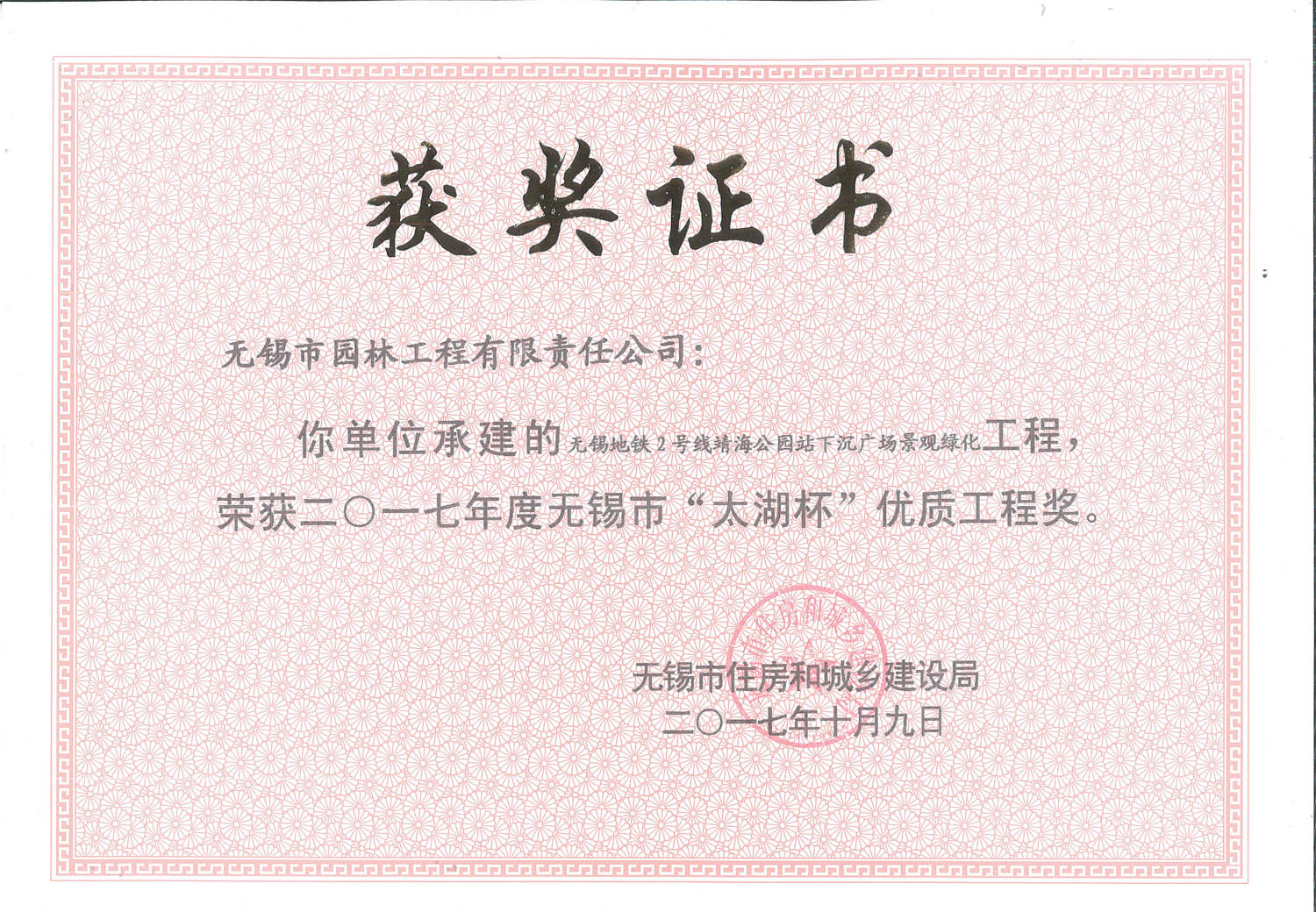 2017年度無(wú)錫市太湖杯優(yōu)質(zhì)工程