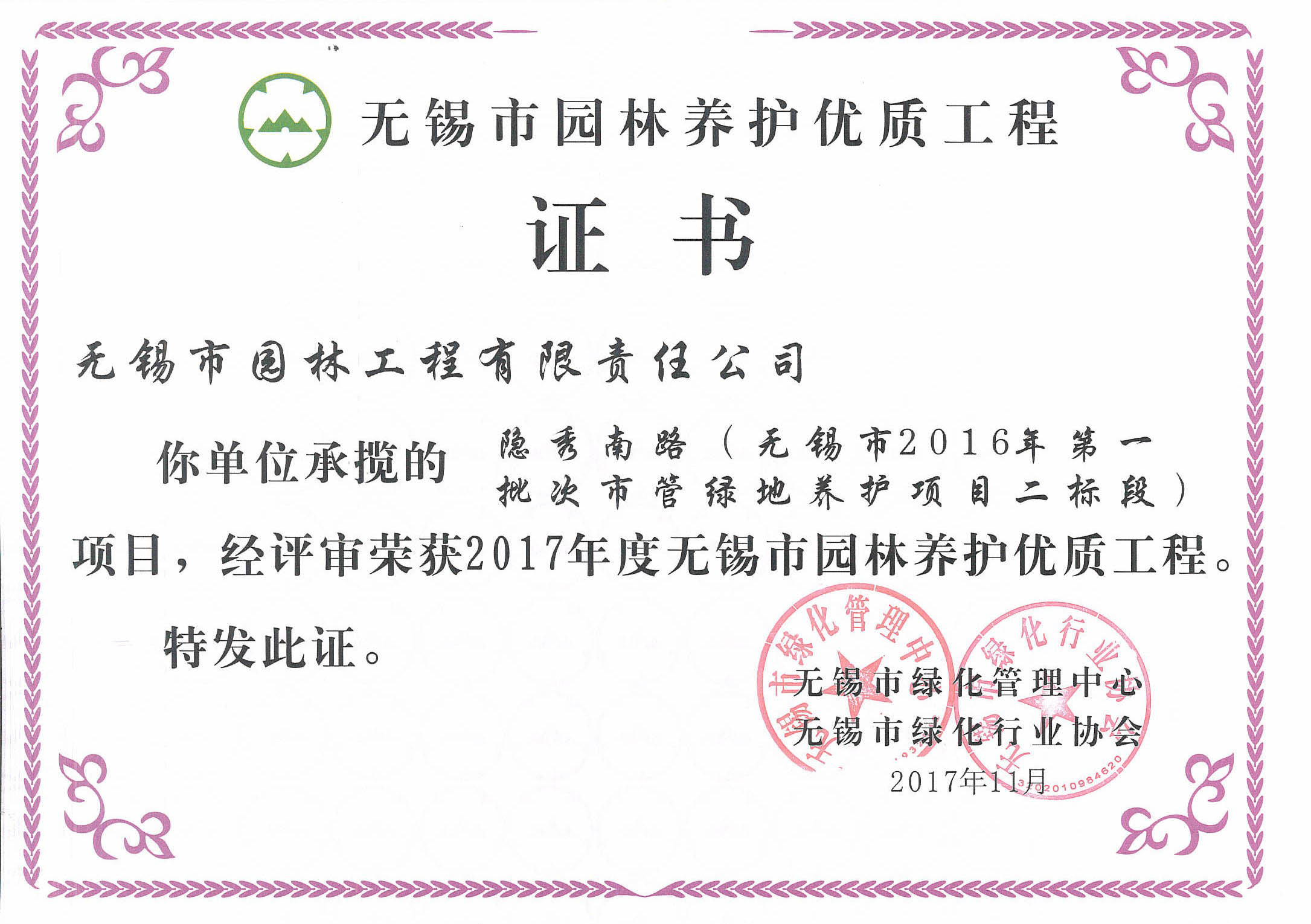 2017-2018無(wú)錫市綠化工作先進(jìn)單位